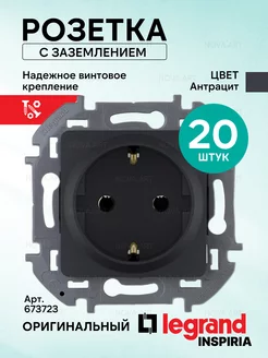 Розетка с заземлением черная INSPIRIA Легранд Инспирия 20 шт