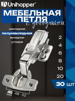 Петля мебельная полунакладная с доводчиком 45 мм 30 штук