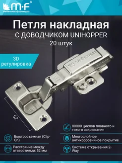 Петля мебельная накладная с доводчиком 52 мм 20 штук