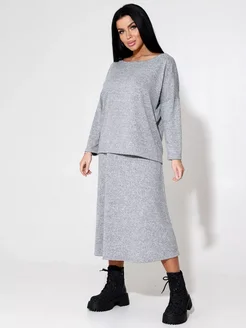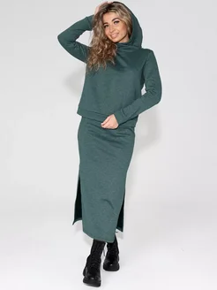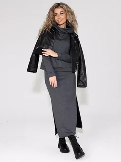Трикотажный костюм с начесом двойка с юбкой