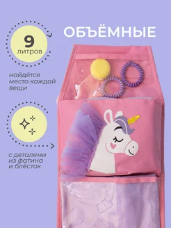 Кармашки в шкафчик для детского сада с единорогом розовые