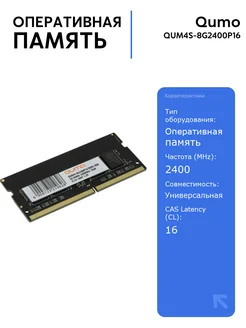 Оперативная память QUM3U-8G1600C11R DDR3 8 ГБ 1600 МГц