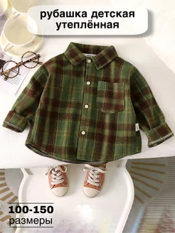 Рубашка детская утепленная в клетку оверсайз фланелевая