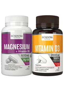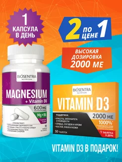 Магний B6 600мг, 90 капсул и Витамин Д3 2000МЕ
