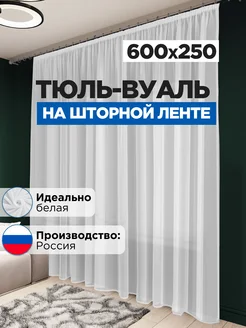Тюль вуаль в спальню и гостиную длинная 600х250 см белая