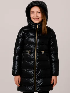 Куртка для девочки зимняя черная с капюшоном