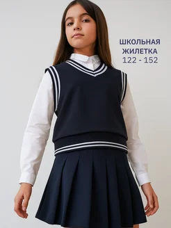 Жилетка школьная для девочки синяя оверсайз