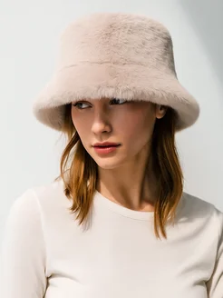 Панама женская зимняя меховая бежевая