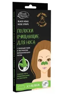 Полоски для носа с зеленым чаем и вулканическим пеплом 5шт