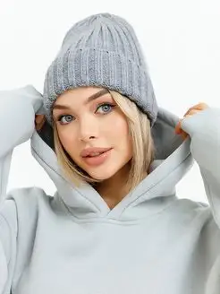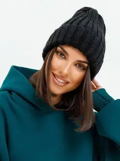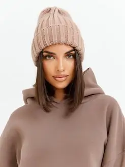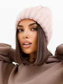Шапка женская зимняя бини тыковка с отворотом крупной вязки