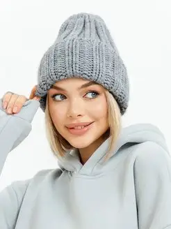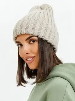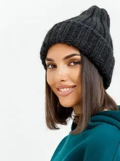 Шапка бини с отворотом крупной вязки