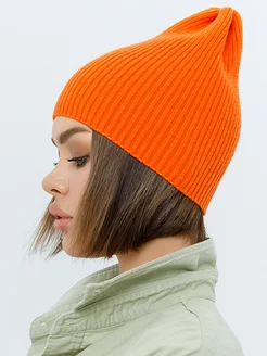 Шапка бини тыковка вязаная тонкая