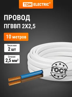 Провод ПГВВП 2х2,5 ГОСТ (10м), белый TDM