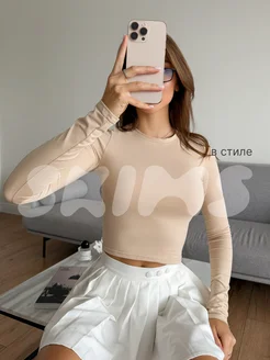 Лонгслив облегающий укороченный длинный рукав хлопок