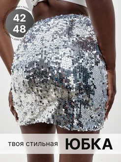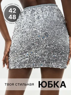 Юбка с пайетками мини праздник нарядная вечерняя серебро y2k