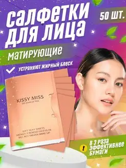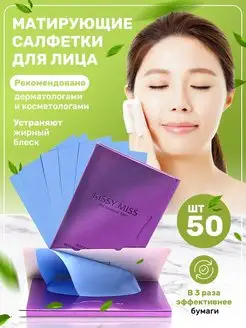 Матирующие салфетки для лица против жира и блеска 50 шт