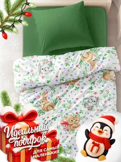 Детское постельное белье 1.5 спальное поплин 70х70 Зайки