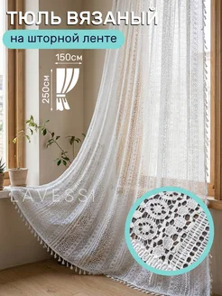 Тюль кружевной, с кисточками белый 150*250 см