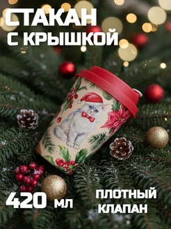 Стакан новогодний с крышкой 420мл с клапаном микс