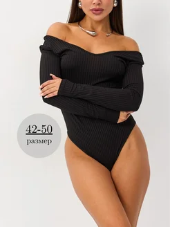 Боди утягивающее с открытыми плечами вечернее в рубчик