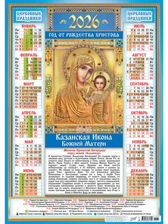 Листовой календарь на 2026 год Формат А2 (420х600мм)