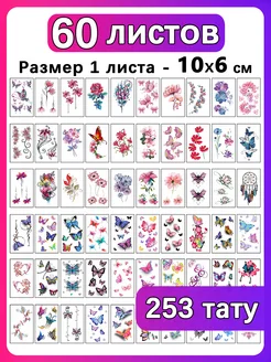Набор переводных тату Цветы Бабочки Ловец Снов 60 листов