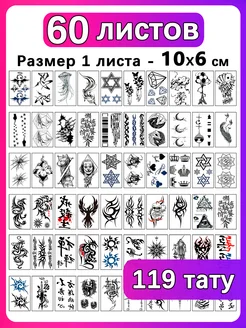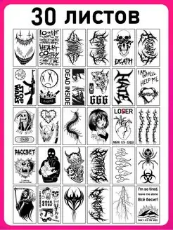 Набор переводных тату Джокер Паук Пентаграмма 60 листов
