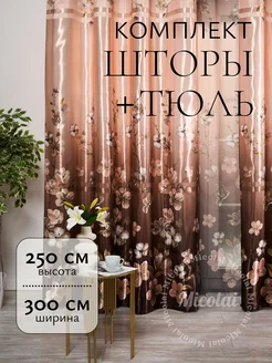 Интерьерные шторы с тюлью в спальню и гостиной, 300х250см