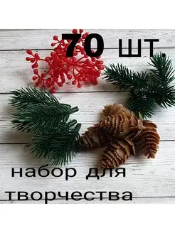 Набор искусственный хвои с ягодами и шишками 70 шт