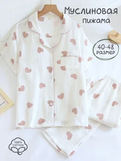 Муслиновая пижама с сердечками со штанами и рубашкой