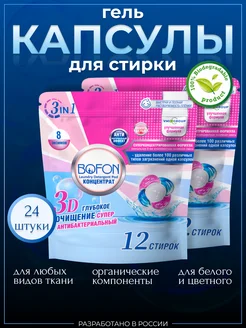 Капсулы для стирки белого и цветного белья 3 в 1 (12+12) шт