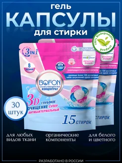 Капсулы для стирки белого и цветного белья 3 в 1 (15+15) шт