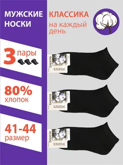 Носки черные укороченные, размер (41-44), 3 пары