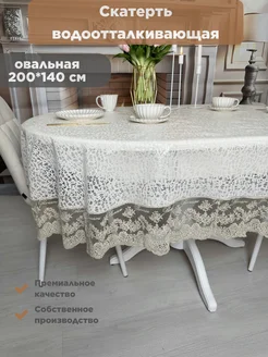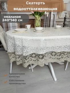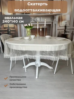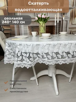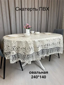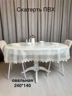 Cкатерть водоотталкивающая пвх на стол 240x140 см с кружевом