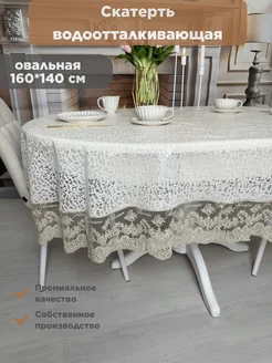 Скатерть водоотталкивающая пвх 160x140 см с кружевом на стол