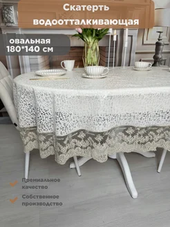 Скатерть водоотталкивающая пвх 180x140 см с кружевом на стол