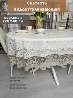 Cкатерть водоотталкивающая пвх на стол 220x140 см с кружевом
