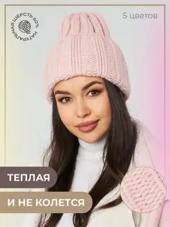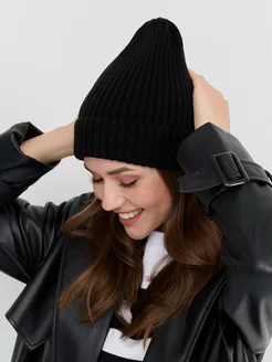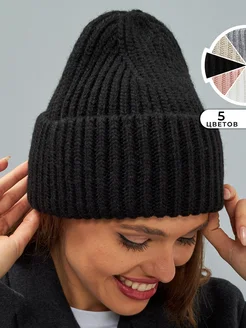 Шапка зимняя вязаная бини Демисезон с отворотом