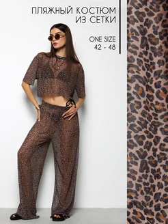 Костюм сетка леопардовый летний пляжный оверсайз с брюками