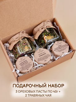 Подарочный набор "3 ореховых пасты по 40 г + 2 травяных чая"