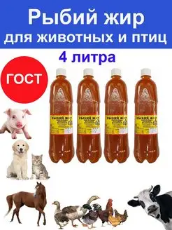 Рыбий жир кормовой для собак, с х животных и птицы 4 литра