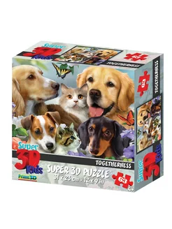 Пазлы для детей от 4 лет Собаки и кошки, 63 элементов