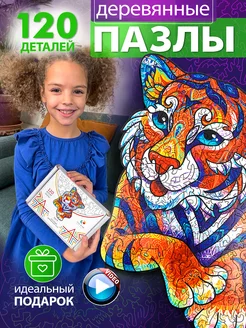 Пазлы деревянные фигурные для детей и взрослых Тигр