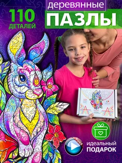 Пазлы деревянные фигурные для детей и взрослых Кролик