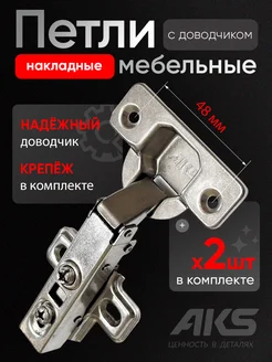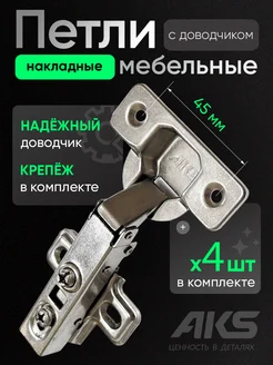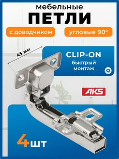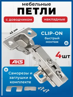 Петля накладная с доводчиком мебельная clip on для шкафа