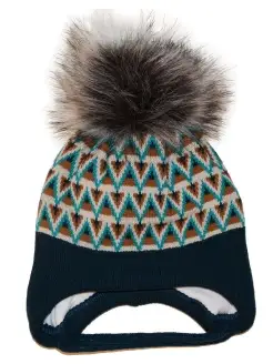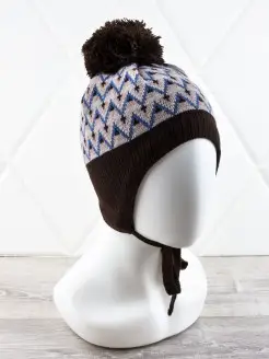 Шапка детская зимняя для и мальчика на завязках с помпоном