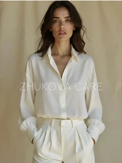 Темно-синяя рубашка оверсайз офисная и в школу блузка
