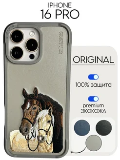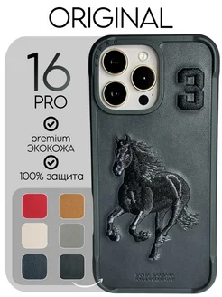 Кожаный противоударный чехол бампер на iPhone 16 pro