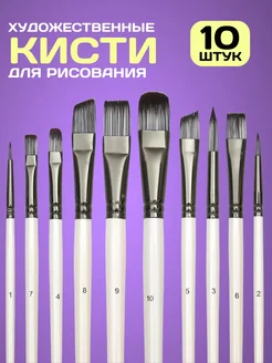 Кисти художественные для рисования нейлоновые набор 10 штук