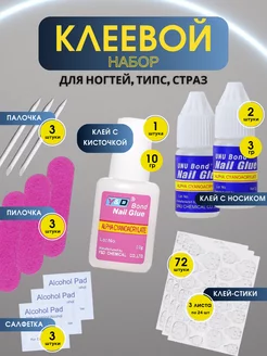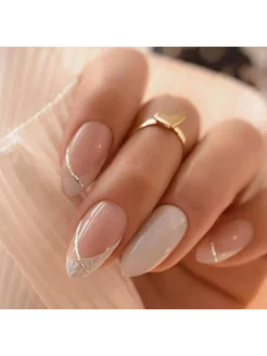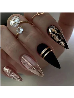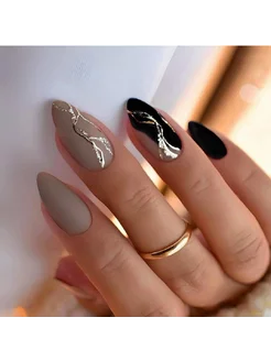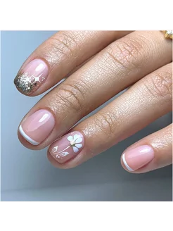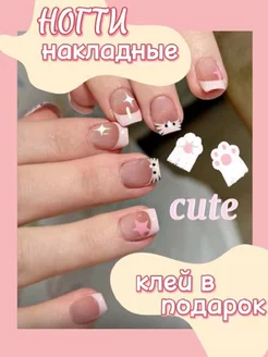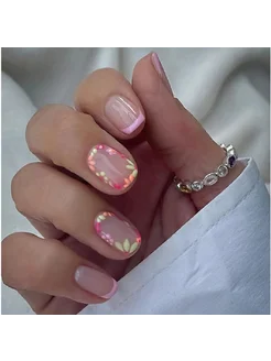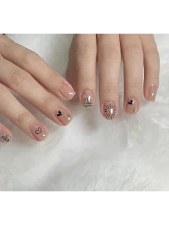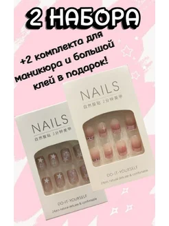 Ногти накладные с клеем и дизайном короткие 24 штуки